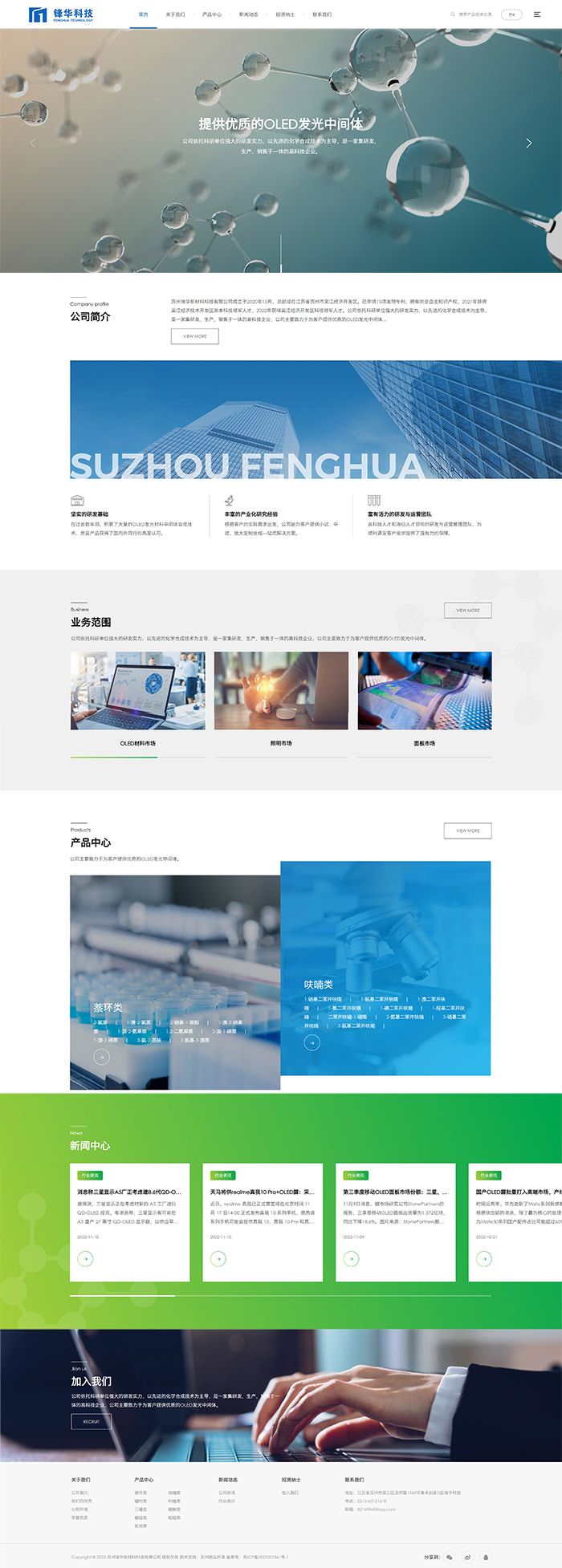 蘇州鋒華新材料科技有限公司成立于2020年10月,總部設在江蘇省蘇州市吳江經濟開發(fā)區(qū)。已申請10項發(fā)明專利,擁有完全自主知識產權,2021年獲得吳江經濟技術開發(fā)區(qū)崇本科技領軍人才,2022年獲得吳江經濟開發(fā)區(qū)科技領軍人才。公司依托科研單位強大的研發(fā)實力,以先進的化學合成技術為主導,是一家集研發(fā)、生產、銷售于一體的高科技企業(yè),公司主要致力于為客戶提供優(yōu)質的OLED發(fā)光中間體。公司具有雄厚的科研力量,擁有一支長期從事材料分子研究開發(fā)的專家團隊,同時與國內多所高校和科研院所建立聯(lián)系合作(如沙特阿拉伯國王科技大學、中科院上海有機化學研究所、蘇州大學、南京工業(yè)大學、浙江大學等),著力為客戶提供生產過程中的各類技術支持,以及生產技術和工藝優(yōu)化等服務。