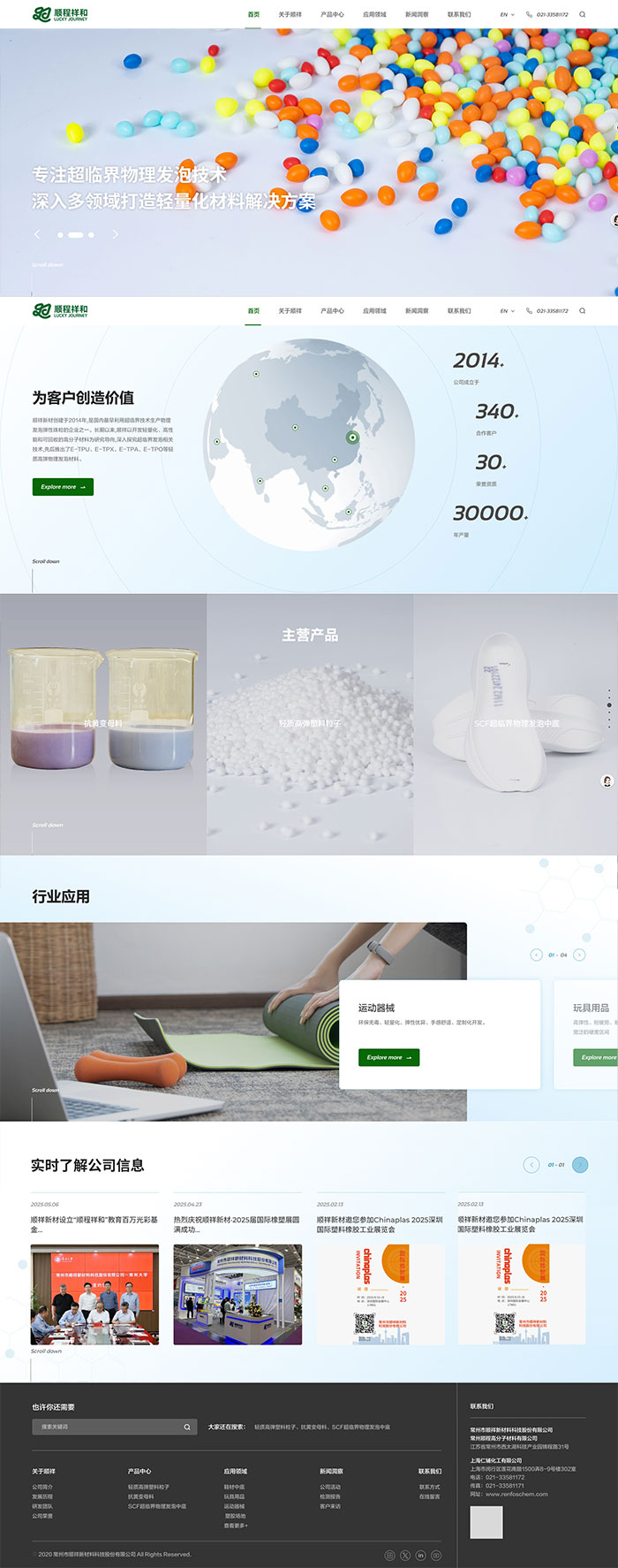 常州順程高分子材料有限公司是順祥新材全資子公司,于2023年4月正式開始運營投產。截止目前,已擁有數條自主研發珠粒發泡生產線,年產能達到10000噸物理發泡珠粒和2000噸高性能聚氨酯抗黃變母料。
